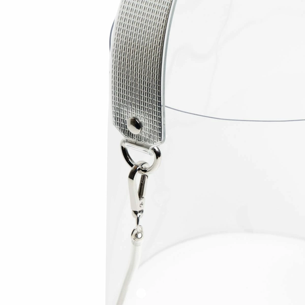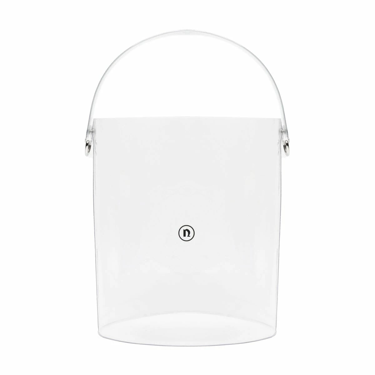 Cylindrical BAG printed with the new nana-nana logo. The handle is made of a silver sheet set within PVC. New wire chain strap in clear tubing. Crimped finish with no sewing. Comes with a cloth drawstring (storage bag) that can be used inside the BAG.