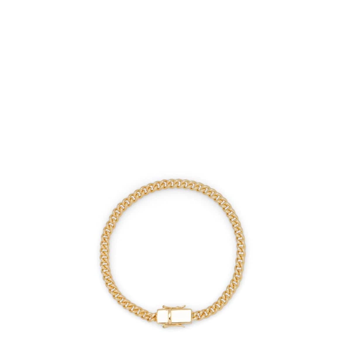 The Rounded Curb Bracelet Thin Gold is a bold curb, designed with our custom made Tom Wood lock. The bracelet is made of high quality 925 sterling silver, plated with 9K gold. All Tom Wood bracelets are classic and modern unisex styles, easy to wear as a single statement piece or to be combined with other bracelets from our collections